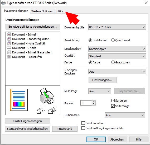 Im nächsten Fenster wählen wir „Druckereinstellungen“