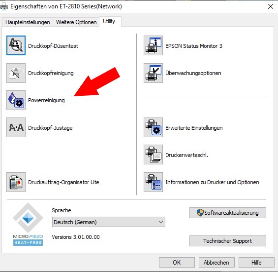 Die Power-Reinigung wird nachfolgend für den EPSON ET-2814 , einem Drucker