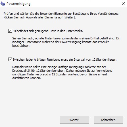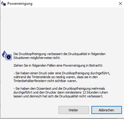Beim Reinigungsvorgang wird Tinte verbraucht - deshalb nur dann durchführen, wenn unbedingt erforderlich!
