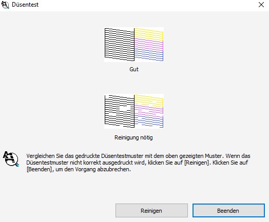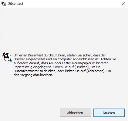 Zum Abschluss machen wir noch den Düsentest mit „Drucken“